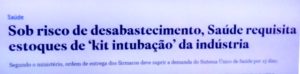 – E o que está acontecendo desde então? A falta de kit entubação nos hospitais do SUS é uma tragédia diária, com gente morrendo por falta do kit ou tendo que ser amarrada pois a dor da entubação é lancinante. Estados e Municiípios podiam comprar os kits… Pra que requisitá-los, então?