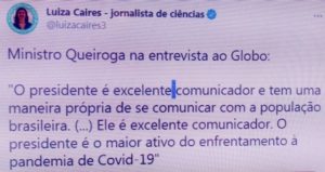 – É médico conceituado, mas já prepara protocolo para uso de remédio ineficaz pra covid e, mesmo sabendo que o Mito é negacionista e combate medidas restritivas contra o vírus, diz que “o presidente é o maior ativo do enfrentamento à pandemia de Covid-19″.