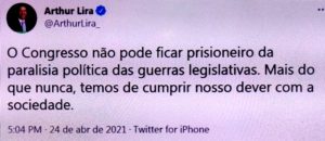 – Pelas minhas contas, 95% de 100 é igual a 05… isto é, 05 pedidos têm razão de ser e deveriam ser acatados. Não serão: a gente pode até ficar peidado, mas Arthur Lira é rafamé véio, gosta de um fulero na Presidência…