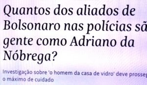 – Alguém viu manchete no Jornal Nacional, n’O Globo, no Estadão, na Folha? Eu não li mas, provavelmente, informaram nas páginas de política a notícia sobre isto publicada pelo The Intercept Brasil… Petistas eram massacráveis! Já com milicianos, o papo é mais embaixo, não é mesm…?