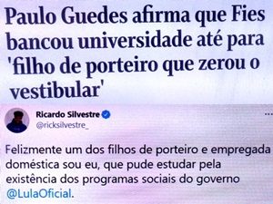 bleorgh.com – A fala do Paulo Guedes sobre o “FIES bancar faculdade pra filho de porteiro que zerou vestibular” mostra os tipos desqualificados que compõem o governo. Primeiro porque o ministro não sabe que o FIES exige nota mínima para aprovação do financiamento…