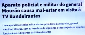 – Junto com ele havia 50 seguranças e cães farejadores. E não deram moleza: fizeram questão de passar detectores de metais nas pessoas e no local. Será que o vice presidente está dando uma de Temer e os bolsonários querem evitar isto?