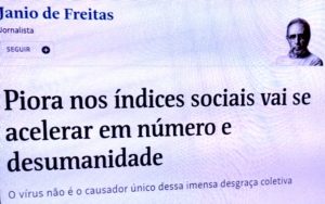 – A realidade é outra: a maior parte dos brasileiros é passiva e detesta assumir responsabilidades. Outra parte é ressentida e vingativa e fica muito feliz quando aquela maior parte se ph..e*… Como disse o Jânio de Freitas na Folha, em palavras bem mais elegantes que as minhas: