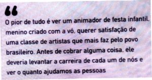 – As ruas, hoje, são as redes e, nelas, Felipe Neto cobrou posição dos sertanejos sobre mortes pela covid e sobre as políticas do governo. Sem argumentos, o endeusado Zezé de Camargo bateu: “Quem é este pivere criado pela vó…?” Com 64 milhoe de seguidores, é um pivete respeitável!