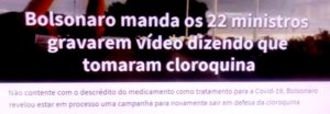– Daí, ele manda 22 ministros fazerem vídeos informando à população que tomaram cloroquina e anuncia tal decisão pro seu gado. Implicitamente, quem não fizer, está fora! Queiroga, Paulo Guedes, Tarcísio, o astronauta, os militares (que vacinaram escondido)… vão mentir publicamente?