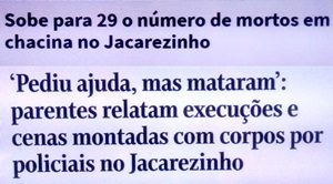 – Estratégia e operação minuciosamente preparadas foram pra p..a* que o pariu. O negócio, agora, era vingar… e matar quem estivesse pela frente. Melhor ainda se fosse preto… A polícia fala em guerra contra bandidos fortemente armados. Mas muito ruins de mira e pontaria!