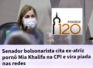 – A dra.Mayra Pinheiro disse que a logomarca da Fiocruz era um pênis, uma prova do esquerdismo do Instituto… e o senador Heinze afirmou que a ex-atriz pornô Mia Khalifa seria gerente de vendas de uma empresa de fachada que fraudou estudos sobre eficácia da hidroxi- cloroquina.