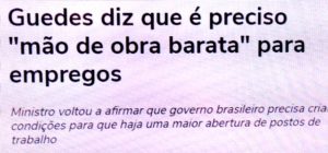 – Ou seja, Paulo Guedes não acredita em programas sociais em que o governo estimule empregos e liberdade de escolha da população… ele propõe programas que mantenham o povo a mercê das classes mais elevadas do país, tipo: minhas sobras são sua sobrevivência! É um solene fdp!