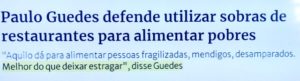 bleorgh.com – A visão elitista é óbvia… mas ele aga e canda pra isto. O ex Posto Ipiranga sugeriu que sobras de alimentos de famílias de classe média e restaurantes sejam doadas a pessoas vulneráveis. É algo como: os restos dos pratos das pessoas de bem devem ser repassados aos sem teto…
