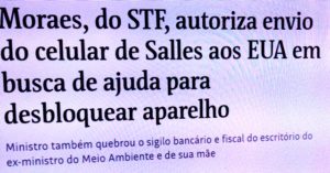 bleorgh.com – Ricardo Salles estava sendo processado quando “pediu demissão”. Antes, teve sigilos bancário, fiscal, telefônico e telemático quebrados, tendo que entregar seu celular à PF. Mas, não deu a senha, obrigando o STF a mandar o celular pros Estados Unidos.