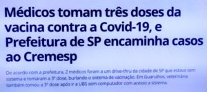 – Ao lado do compadrio na compra de vacinas – uns enrolando a compra de boas vacinas pra que outros ganhem dinheiro oferecendo vacinas fajutas – a história de pessoas que aproveitam a desorganização do governo pra tomarem uma 3ª dose de vacina sem precisão, é a prova disto.