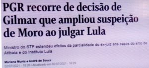bleorgh.com – Numa Procuradoria chefiada por por um parceiro do Mito, a lógica não é algo a ser considerado. Sérgio Moro foi julgado parcial em uma ação contra Lula pelo STF. Gilmar Mendes julgou que não existe meia parcialidade, ou seja, Moro foi parcial em todos os processos contra Lula.