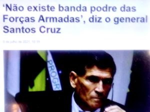 bleorgh.com – Instigante a declaração do general Santos Cruz, que virou queridinho da grande imprensa depois de ser chutado pelo Mito. Para ele, não há banda podre nas Forças Armadas: “Não se pode confundir as responsabilidades pessoais com a postura institucional”.