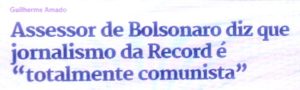 – E, com o poder político dado pelos votos de milhares de fiéis, ela ganhou a concessão da TV Record no governo Sarney, aumentando ainda mais sua influência religiosa pelo país. Ou seja: dizer que o jornalismo da Record é totalmente comunista é de uma estupidez cavalar