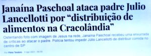 – Agora, com uma foto de Jesus nas mãos, quer que padre Lancelotti pare com “a distribuição de alimentos na Cracolândia, pois isto só ajuda o crime” e a ação do padre acaba atrapalhando quem mora e trabalha na região. A foto de Cristo certamente é falsa…