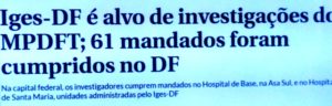 – A última está acontecendo hoje no DF. MP e PC do DF estão cumprindo 61 mandatos de busca e apreensão em hospitais geridos pelo IGES/DF, suspeitos de desvio de milhões de reais em dois contratos destinados ao fornecimento emergencial de leitos de UTI’s.