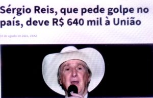 – Lembro isto porque o Sérgio Reis, o cantor sertanejo de “Panela velha é que faz comida boa” resolveu convocar a cavalaria pr’uma parada em Brasília dia 07 de setembro pra arrebentar com a democracia… Que ele se tornou bolsonário, já se sabia, mas porque a revolta?