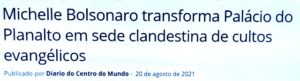 – Disse ele: “Gostaria que os senhores testemunhassem que estou desinfetando esta poltrona porque nádegas indevidas a usaram”. Tenho certeza que Janja não fará isto quando Lula assumir a Presidência em janeiro de 2023, mas deveria…
