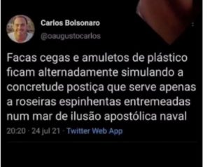 – Comenta-se, à boca pequena, que Carluxo, com a ameaça, desparafusou de vez, o que é comprovado pelos seus últimos posts nas redes. Eu discordo! Seus posts sempre foram enigmas intraduzíveis, só entendidos por entendidos…