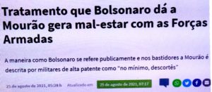 bleorgh.com – Colunista Bela Megale afirma que altas patentes militares acham descortês a forma que o Mito trata o vice Hamilton Mourão, um general de 04 estrelas. E daí? Vão trocar milhares de boquinhas num governo civil por um protesto na Esplanada? Duvido!