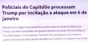 bleorgh.com – O exemplo, dizem, vem de cima. Nos Estados Unidos, os policiais que fazem a segurança do Capitólio estão processando o ex presidente Trump pela invasão de seus “patriotas” naquela tentativa de golpe contra a democracia em que morreram 05 pessoas.