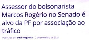 bleorgh.com – Esta narrativa é significativa. A PF investiga um grupo criminoso que traficou uma tonelada de cocaína de Rondônia pro Ceará. Um dos presos é assessor do senador Marcos Rogério, um dos membros mais ativos da tropa de choque do Mito na CPI da Pandemia.