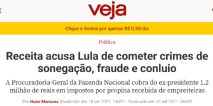 bleorgh.com – A Receita Federal está cobrando R$1,2 milhão de Lula. Ela acusa o ex presidente de omitir em suas declarações de renda recursos que recebeu de empreiteiras para executar reformas no tríplex do Guarujá e no sítio de Atibaia. Os processos já foram pro lixo, mas o Leão é teimoso.