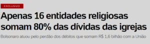 – Alguns pastores de Cristo não pensam assim… O Instituto Geral Evangélico, de um tal “homem que distribui esperança” deve R$526,5 milhões em impostos ao Tesouro, a igreja de Valdemiro Santiago deve R$153 milhões… mesmo vendendo muito feijão bento contra o covid…