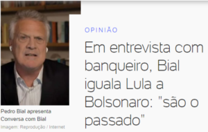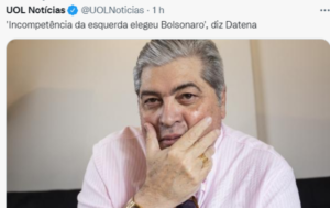 – O Mito é radical, fascista, e seu governo é uma tragédia… O Lula governou 08 anos e foi o melhor período que os brasileiros viveram em 521 anos de história! Encontraram, agora, o Plano D, verbalizado pelo Pedro Bial em seu programa: Lula e o Mito são o passado! Vão se fu..r* também!