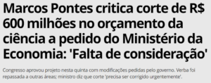 7 – Outra comitiva com 23 assessores da Ciência e Tecnologia, mais o ministro (sic), seguem também para Dubai. A imprensa brasileira vem criticando acidamente tal comitiva, visto que o ministério acaba de perder 92% de seus recursos orçamentários, cerca de R$600 milhões.