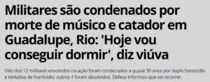 4 – Surpresa! O placar foi apertado, 3×2, mas a Justição Militar condenou 08 dos 12 militares que mataram 02 inocentes no Rio em abril de 2019. O tenente que comandou a patrulha levou 31 anos e meio e os demais 28 anos de prisão em regime fechado.