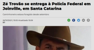 – Pra evitar confusões, já começaram a surgir versões: de avião até Lima/Peru, de carro até o Paraguai, atravessando para Foz do Iguaçu… Então tá… ele enganou a Polícia Federal da fronteira pra se entregar à Polícia Federal de Joinville…