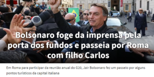5 – Entreouvido num cercadinho do G-20: Erdogan (Turquia) – Como está a situação atual no Brasil? MitÔ – Tudo bem. A economia voltando bem forte. A mídia como sempre atacando, estamos resistindo bem. Não é fácil ser chefe de Estado em qualquer lugar do mundo. (…)