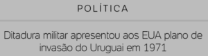 – Com a abertura de documentos secretos dos Estados Unidos, ficamos sabendo que tem mais apesares: em 1971, os generais pátrios fizeram planos de invadir o Uruguai caso a esquerda vencesse as eleições, mas não invadiram porque as eleições foram fraudadas, com ajuda do Brasil.