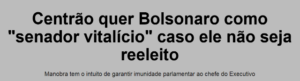 – E, como a criatividade de nossos políticos é inigualável, já estão maquinando a forma de proteger o MitÔ após 2022, quando perder o foro privilegiado. Querem criar o senador vitalício, que beneficiaria os ex presidentes da República.