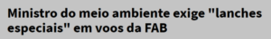 1 – A realidade é que o país tem 19 milhões de brasileiros esfomeados e 05 milhões vivendo com insegurança alimentar. Não é algo que diga respeito ao ministro (sic) do Meio Ambiente. Ele próprio estabeleceu o cardápio seu e de sua comitiva quando viaja nos aviões da FAB.