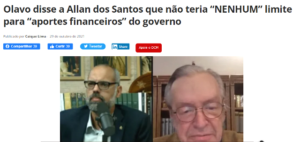 -…e o governo, conforme anotação de conversa sua com o guru Olavo de Carvalho, que lhe disse que não havia limite de aporte do governo para seu site Terça Livre… Muito livre, como se vê!