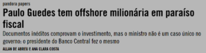 - Vocês se lembram que um mês atrás, se tanto, os Pandora Papers mostravam que Paulo Guedes e Campos Neto tinham off shores no Caribe? Que a política econômica do Brasil, conduzida por eles, poderia estar beneficiando-os?