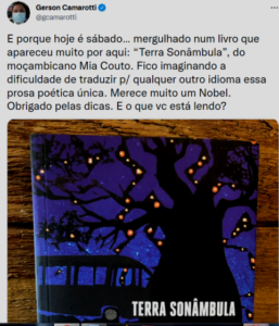 – E quem reaparece é justamente o Camaroti? Indicando Mia Couto? Tem caroç debaixo deste angu…