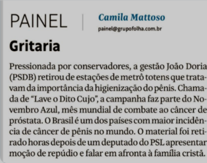 – Fico imaginando se ele e a mulher dormem de camisolões pra não verem as partes pudendas um do outro! Mais chocante ainda: o governo paulista atendeu o deputado e retirou a campanha do metrô… A família cristã agradece: ninguém mexe com o pênis de um paulista…