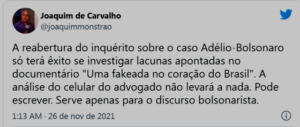 – O “possível” crime aconteceu em 2018, ajudou a eleger o MitÔ e, no inquérito, Adélio foi considerado inimputável, por insanidade. Já sabemos o resultado: se o MitÔ ganhar as eleições, a insanidade será mantida e ele será liberado… se não, é capaz de pescarem o Carluxo!