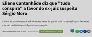 – É o que se depreende das sempre tucanas palavras da Eliane Cantanhêde: “Bastou Moro se desvencilhar da consultoria internacional, tirar a gravata, passar a falar como político e até sorrir, que tudo parece conspirar a favor dele” Nada de novo: conspirar é o que eles sabem fazer!