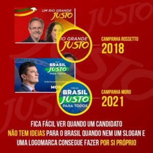 – Acho que não. Isto é coisa do Podemos – o ex ministro não tem capacidade pra criar campanhas publicitárias. Deve ter dado o tema: Justiça, reforçando a imagem de herói. E o publicitário não criou… copiou! É difícil criar quando não se tem ideias. Nem projetos de governo!