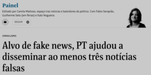 8 – A Folha não desiste! Vira e mexe, lá está ela tentando enfiar o petismo no mesmo saco fedido do bolsonarismo. E com uma sutileza digna do tucano bolsodória… No Painel, a notinha é singela: disseminar fake news não é privilégio do MitÔ… O PT também o faz!