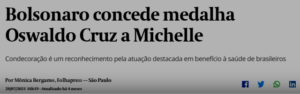 4 – Bom… com certeza, o MitÔ está tentando amainar seu trauma por não ter medalhas no peito, por não chegar a general. Em 03 anos de governo, já amerdalhou sua mulher por 03 vezes… com as mais altas medalhas da República. O que ela fez por merecer as horarias nos peitos?