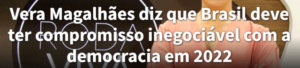 3 – Qual será o conceito de democracia que certos medalhões da grande imprensa brasileira têm? E de ética jornalística? Com reconhecido ativismo tucano durante os tempos petistas, Vera Magalhães, do Roda Viva, fala em compromisso inegociável com a democracia em 2022.